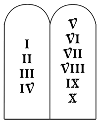 THE TEN COMMANDMENTS – The commandments refer to the ten great commandments cut into stone and given to Moses by God Himself (Exodus 20). They are always depicted on two stone tablets. When oak leaves are shown behind the two tablets, it symbolizes secureness and regeneration. Because there were no verse divisions in the Bible until the Geneva Bible in 1560, the ten commandments can be divided at different points.
