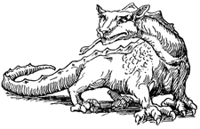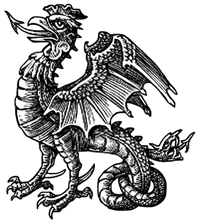 According to the Bestiaries, the basilisk is a mythical creature said to spring from an egg accidentally laid in manure by a chicken. The egg is then hatched by a frog or snake. It’s body is part rooster with a snake’s tail and, depending on the account, sometimes contains parts of a frog. Its name, basiliscus, is Greek for “little king”. This is appropriate because the basilisk is said to be the king of the serpents and is around six inches in length. The basilisk is dangerous because its stare can kill a man, its smell can kill snakes and fire from its mouth can kill birds. In some older Bible translations the basilisk actually appears in Psalm 91:13. “Thou shalt tread upon the adder and the basilisk...the lion and the dragon” (KJV). The basilisk is usually portrayed under the feet of Jesus.