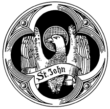 and its feathers become heavy and ragged. The eagle flies high into the sky towards the sun. When it gets close to it, the sun burns off the old feathers and the film from the eagle’s old eyes. Upon falling to the earth, the eagle plunges into the water three times, which renews it to full health. 2. The eagle is a symbol of St. John, referring to the prophecy in Ezekiel 1:5,10 dealing with the four living creatures. John was likened to the eagle because he aspired to soar ever higher seeking the truths of God.