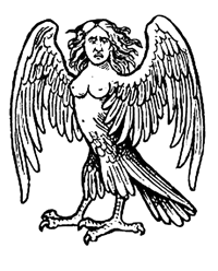 evil, selfishness and pillaging. It has the head and bust of a woman and the body of a vulture.