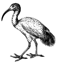 IBIS – The Bestiaries tell of a mythical bird called the ibis which lives along the Nile river. It feeds only on dead fish that float to the surface.