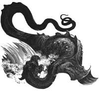 HYDRUS (Hydra) – 1. In the Bestiaries there are many different descriptions of this mythical animal, from a variety of water snakes (most probable) to the hydra which has numerous heads (often nine).