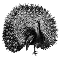 PEACOCK – 1. The peacock, in representations from the early days of the Christian church, symbolizes eternal life. The peacock is sometimes portrayed in art as drinking from a vase. In this case, it symbolizes a Christian drinking the waters of eternal life.